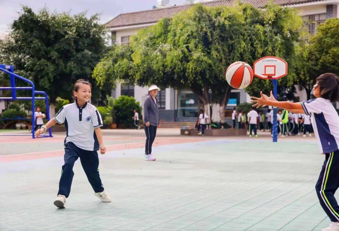 如今,课间与课后的操场上,处处可见孩子们奔跑跳跃的身影:篮球少年你争我夺、挥洒汗水;足球少年们带球突破、尽情驰骋;健身路径旁,围满了体验各类器械乐趣的同学。